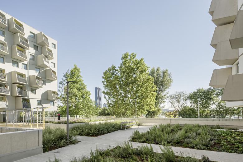 Die neuen Gemeindewohnungen am Handelskai schaffen hohe Wohnqualität für bestehende und neue Bewohner*innen. MIt schlanken Baukörpern und einem durchgehenden Gartendeck als "fünfte Fassade" ensteht ein gemeinschaftliches und offenes Wohnumfeld mit Donaublick für die ganze Nachbarschaft.