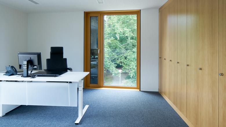 Die Besucher gelangen über einen gut proportionierten Vorplatz in ein übersichtliches Foyer mit Infobereich und einer repräsentativen vertikalen Erschließung der Obergeschosse. Differenzierte Fluraufweitungen mit integrierten Wartezonen und Blickbezug nach außen sowie “hängende Gärten” im Inneren sorgen für eine helle und angenehme Atmosphäre.