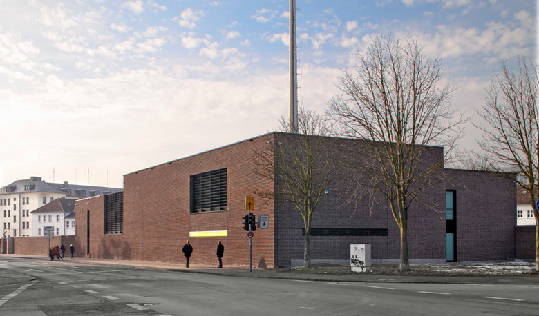 Besonderheiten und technische Innvoationen: Weit spannende Flachdecken, Trägerrost, Klinkerfassade, Pfahlgründung und Flachgründung