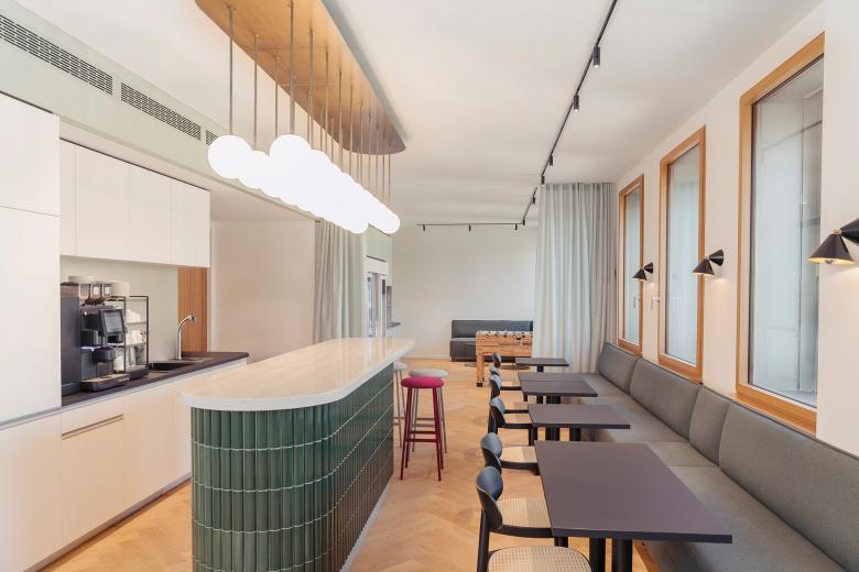 Das Ergebnis: eine Arbeitswelt, die Rückzug und Austausch in Einklang bringt – getragen von moderner Klarheit, nachhaltiger Materialität und der räumlich spürbaren Geschichte des Hauses.