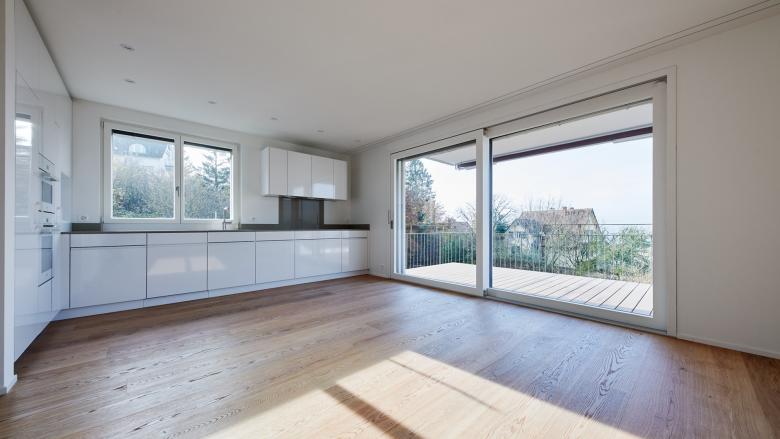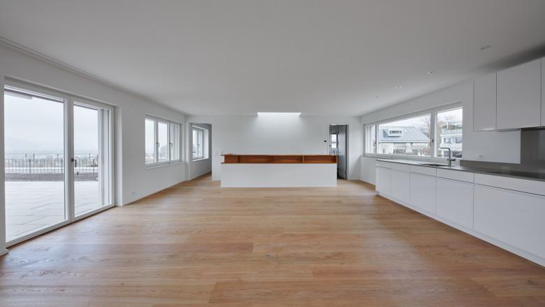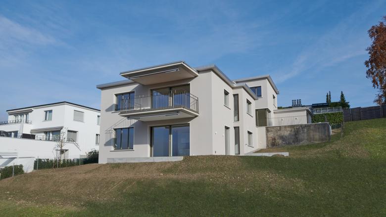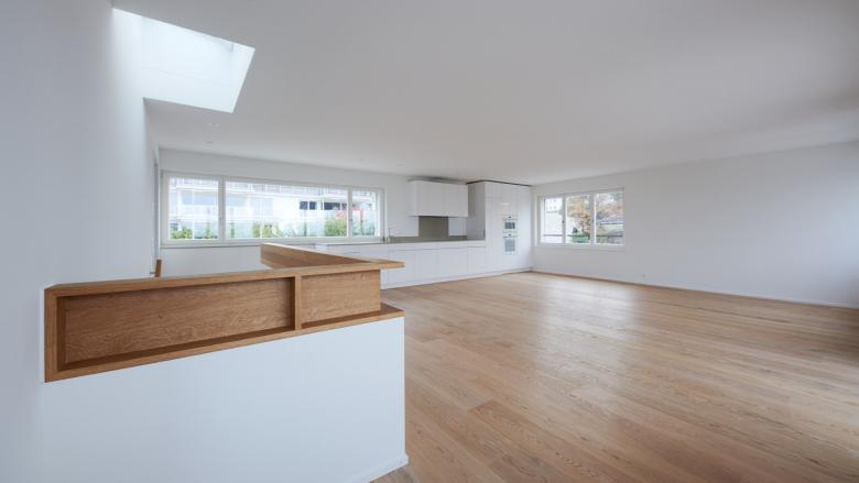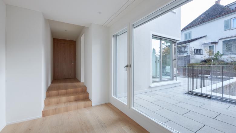 Im Gargengeschoss und im Erdgeschoss befinden sich zwei grosszügige Geschosswohnungen. Ein Teil des Erdgeschosses bildet zusammen mit dem Obergeschoss eine Maisonettewohnung mit grosser Terrasse.