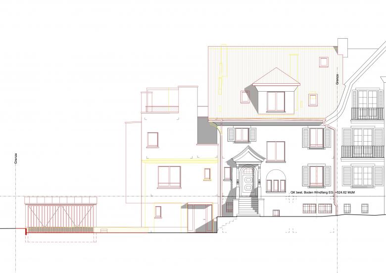 Die Überbauungsziffer war im Bestand bereits ausgeschöpft. Mit einer Aufstockung des 1926 angebauten Garagenteils und dem Ausbau des Untergeschosses konnte die Ausnützung aber noch etwas erhöht werden.