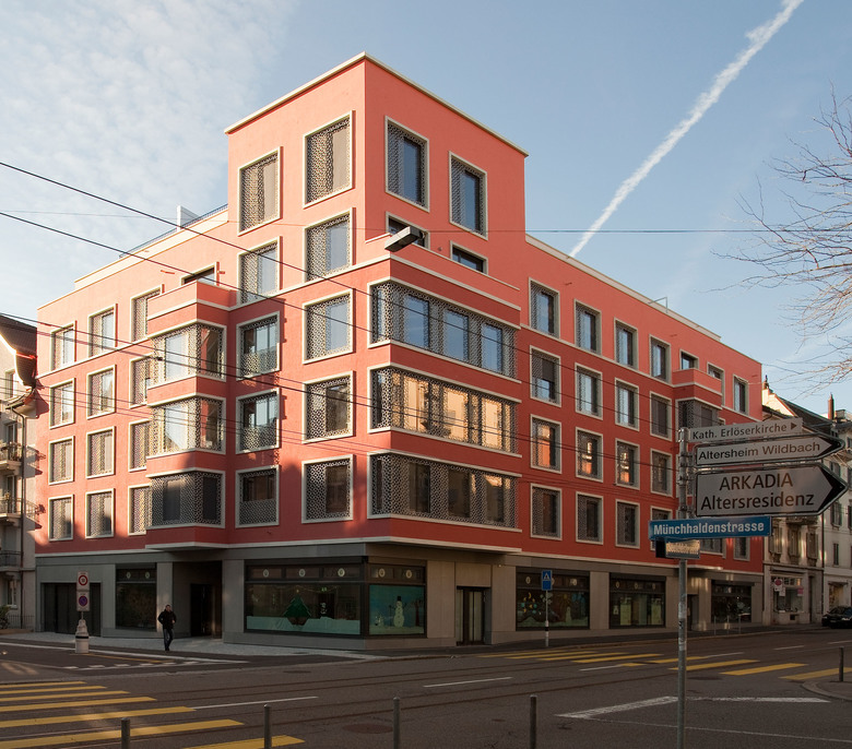 Das Projekt fasst drei Parzellen zusammen: Seefeldstrasse 188 / 190 und Münchhaldenstrasse 15. Im städtebaulichen Kontext handelt es sich um eine repräsentative Ecksituation im Umfeld einer heterogenen Architektur aus verschiedenen Epochen. Unser Gebäude orientiert sich an seinem Blockrand und schliesst die heutige Lücke an der Seefeldstrasse. Die Ecksituation wird besetzt und auch selbstsicher eingefordert.