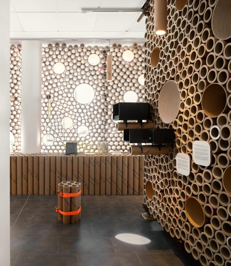 Die angewandte Strategie hinterfragt konventionelle Produktionsprozesse und zeigt, wie Recycling in der räumlichen Gestaltung eine überzeugende gestalterische Qualität entfalten kann. Zugleich versteht sich das Projekt als Prototyp für zukunftsweisende Zero-Waste-Konzepte.