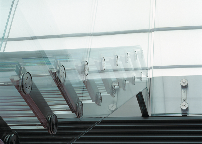 The glass staircase highlights this design strategy. The stair, which functions as a floating transitional element between new and old, was developed in close collaboration