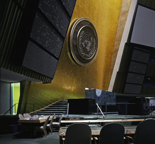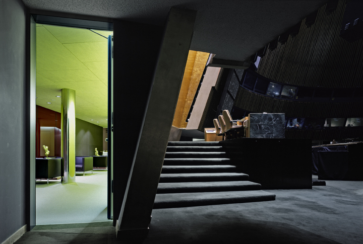 David Hotson Architect acted as the executive architect on the renovation of the offices of the Secretary General and President of the United Nations, located immediately behind the main podium of the UN General Assembly building in New York. This project was designed in association with INLAY, a team of young Swiss artists and architects who won a national competition to design the gift of the Swiss Government to the United Nations on the occasion of Switzerland's joining the UN as a full member. The completed renovation was unveiled by UN Secretary General Kofi Annan at the opening of the UN General Assembly in September 2004