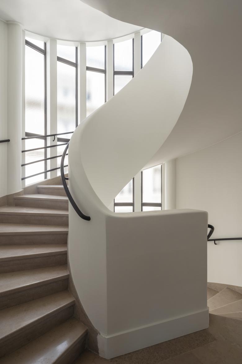 Kompetenz in Sachen Nachhaltigkeit bewies unser Team in Paris diesmal an einem besonders komplexen Projekt. Aufgabe war es, das denkmalgeschütztes Gebäude „Le Palacio“ mit den Anforderungen der Gegenwart und den Notwendigkeiten der Ökologie zu verbinden. Das Bürohaus von Maurice Hennequet (1887-1949) an der Place Madeleine ist ein Juwel der späten 1930er Jahre, mit Elementen des Style Paquebot oder Streamline Modernism, wie diese Strömung in Frankreich und Amerika jeweils genannt wird.