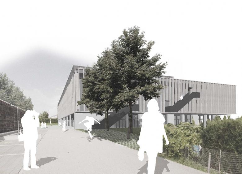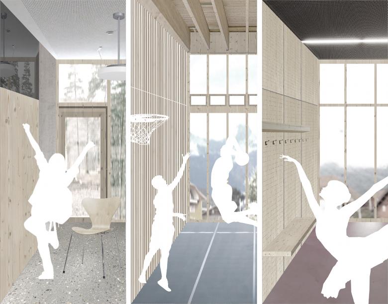 Mit einem offenen Projektwettbewerb nach SIA 142 suchte das Amt für Grundstücke und Gebäude ein städtebaulich und architektonisch stimmiges Projekt mit einem Generalplanerteam für die Projektierung und Realisierung des Neubaus Doppelturnhalle mit Schulräumen für das Bildnerische Gestalten als Ingenieurholzbau.