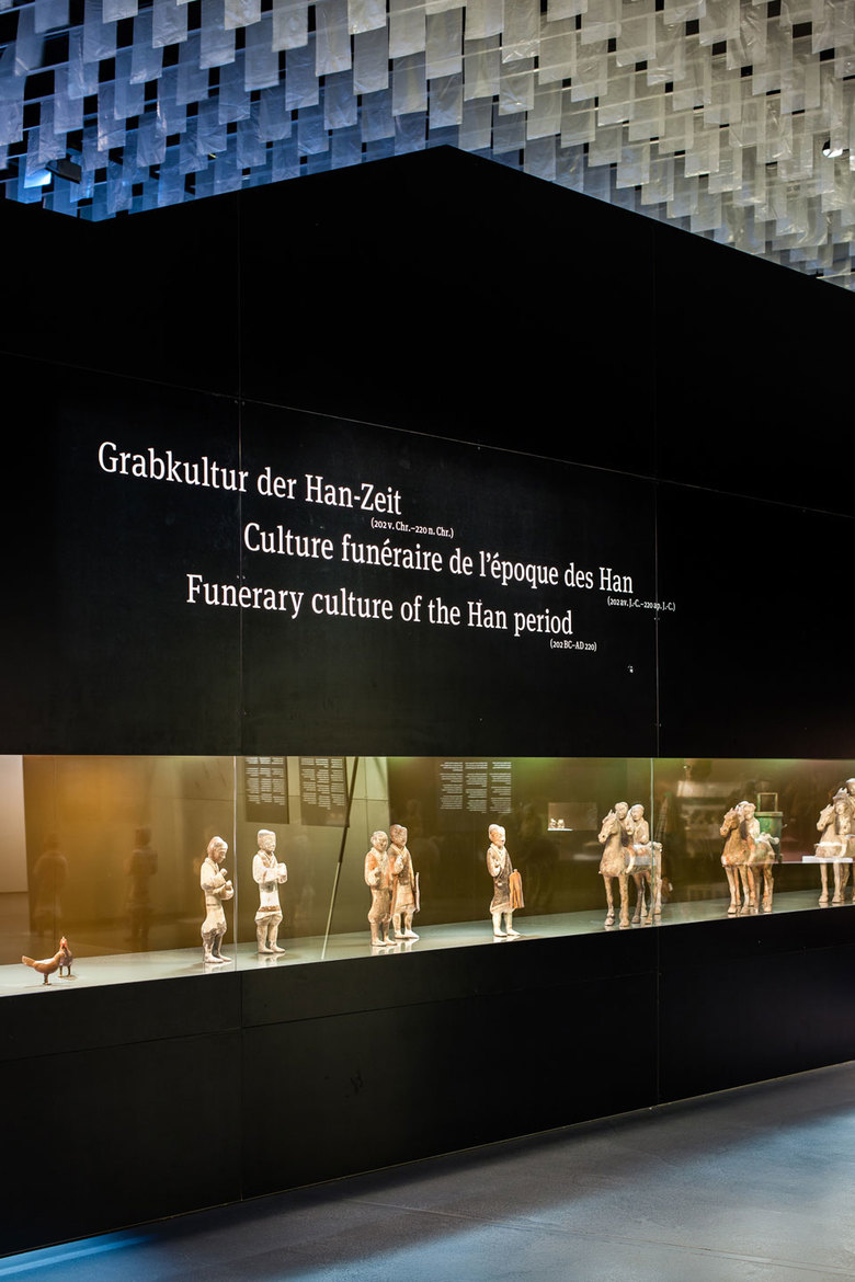 Die Faszination für Qin Shi Huangdi und seine Zeit wird auch durch weitere mediale Animationen und grafische Installationen erläutert. Inspirationsquelle für die Farbgebung der gesamten Ausstellung bildet das chinesische Schattentheater.