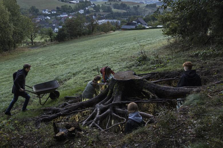 Roots is part of the Open Mind Places in Referinghausen, located in the Sauerland region of Germany. This installation was collectively built using a spruce tree that succumbed to hot summers caused by climate change. Unlike traditional perspectives, the installation invites visitors to view the tree from below, exposing its roots and prompting reflection on deeper environmental challenges.