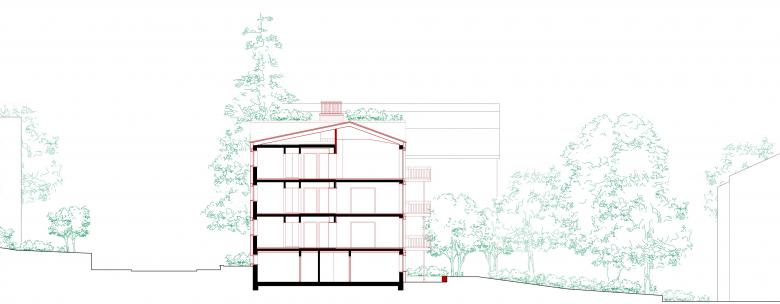 Das Mehrfamilienhaus aus dem Jahr 1940 steht in seiner heutigen Form als Fremdkörper im von Baumeisterarchitektur um 1900 geprägten Fluntern. Im Zuge der energetischen Sanierung wird dem Gebäude ein gänzlich neuer Ausdruck verliehen, welcher sich einerseits in das Quartier einfügt, andererseits eine selbstsichere Eigenständigkeit erhält.