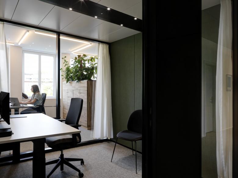 Im Zuge der Umbaumassnahmen in zum Teil neuen Geschossen gestalteten wir diese zeitgemässer und kompakter. Die Räume im Hochparterre sollten in die neue Kundenzone transformiert werden, während die oberen Geschosse den Anforderungen der jeweiligen Geschäftseinheiten entsprechen mussten.