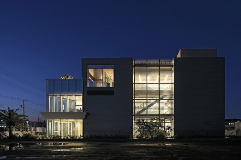 オフィスで働くスタッフと倉庫で荷受・発送をするスタッフがガラス面を挟み一つの空間で働くことで、業務の効率化と組織としての連帯感を生み出している。また、奥行きが深く光が入りにくい商品倉庫のスペースにオフィス内の吹き抜けを介した大窓から自然光を落とし明るいワークプレイスになるように計画している。3階のテラスに出ると大階段を通って富士山が見える屋上テラスまでの広い外部空間があり、休息とレクリエーションの場として利用され、スタッフ間のコミュニケーションを図る場となっている。