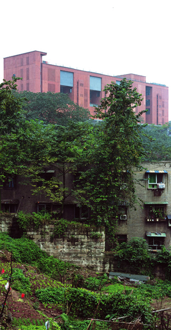 The comprehensive teaching building of the sculpture department in the Sichuan Fine Arts Institute lies in corner of the campus, a narrow and small plot.