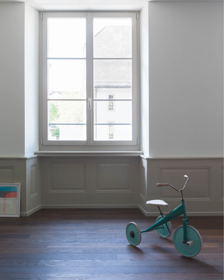 Das über zweihundert Jahre alte Haus wahrt ein Stück Schweizer Geschichte. Datierend aus der Zeit, als Aarau helvetische Hauptstadt werden sollte, waren die Häuserzeilen als Wohnraum für Regierungsbeamte vorgesehen. Danach haben die jeweiligen Bewohner ihre Spur in Form baulicher Eingriffe hinterlassen. Der Umbau zollt der Geschichte Respekt, indem er die baulichen Schichten miteinander verflechtet und sanft ergänzt, um den heutigen Anforderungen an das Wohnen gerecht zu werden. Die Tragstruktur wurde freigelegt und verstärkt, die Infrastruktur modernisiert. Wandtäfer repräsentieren wieder, Durchblicke schaffen Weite und Farben erzeugen Stimmung.