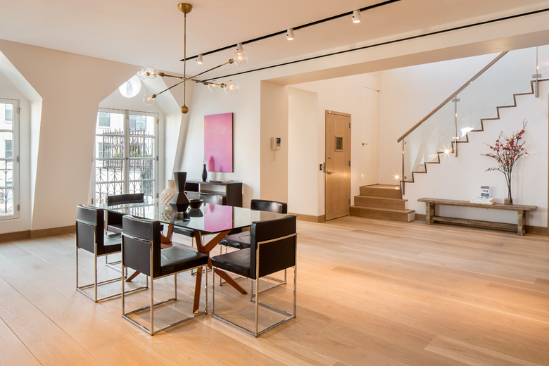 This Tribeca penthouse makes best use of every angle and every view. Our signature design brings the outside in with oversized windows and glass doors, multiple skylights, three large terraces, and a massive private roof deck with expansive views.