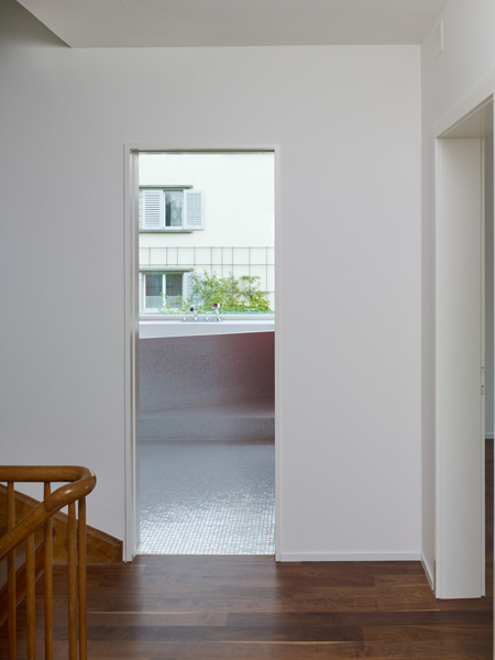 Die verbleibenden Räume wurden sanft saniert. Der altertümliche Ausbau aus den siebziger Jahren wurde entfernt, originale Bauteile wurden instandgesetzt und aufgefrischt. Wände, Böden und Decken wurden erneuert.