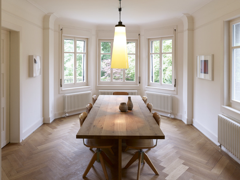 Das Haus an der Eleonorenstrasse gehört zu einer Häusergruppe, die nach der Jahrhundertwende als Wohnsitz für Professoren der nahegelegenen Universität erstellt wurde. Erhard Gull, Sohn von Gustav Gull und Architekt des Museums Bellerive arrangierte die Häuser nach Vorbild der englischen Gartenstadt in einem locker und durchgrüntem Ensemble aus zweigeschossigen Doppel- und Dreifachhäusern. Das Haus wird über das Treppenhaus betreten, das den Blick bis unter das Dach freigibt und von welchem sämtliche Räume erschlossen sind. In der ursprünglichen Disposition sind auf beiden Wohngeschossen den zwei gartenseitigen Haupträumen zwei separate kleinere Nebenräume angegliedert. Das Umbauprojekt verbindet die Räume im Erdgeschoss zu einer offenen Abfolge von Wohnküche, Salon und Wohnzimmer, wobei die ursprüngliche Typologie erhalten bleibt und jeder Raum seine eigene Stimmung entfalten kann.
