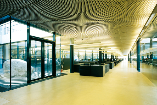 Die regelmäßige Anordnung der verglasten Atrien vermittelt räumliche Großzügigkeit, gute Orientierung und ermöglicht eine tageslichtähnliche Belichtung von oben.