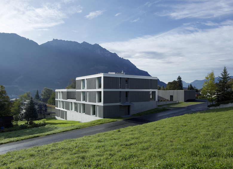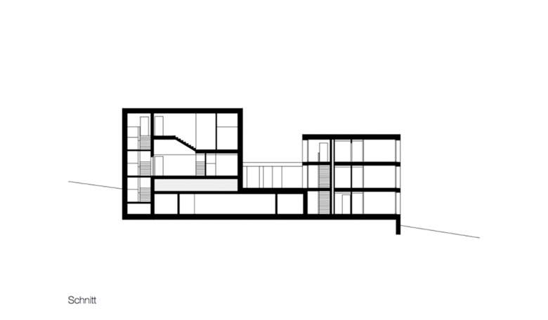 Es ist nicht einfach ein Haus, und es ist auch nicht einfach entworfen worden. Ein kleiner Wettbewerb gab die Richtung vor: Gohm & Hiessberger konnten mit ihrer Differenzierung der Baumassen am Hang überzeugen. Die drei Wohnungen der Geschwister setzen die Akzente der Wohnanlage mit sieben weiteren Einheiten und Tiefgarage. Mal eingeschoßig, mal über zwei Geschoße gehend, sind es auf die drei Geschwister genau zugeschnittene Gebilde mit ganz individuellen Außenräumen: Garten, Hof, Loggia.