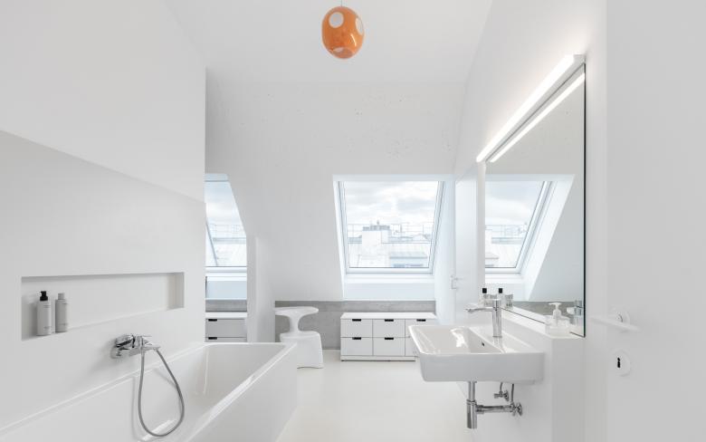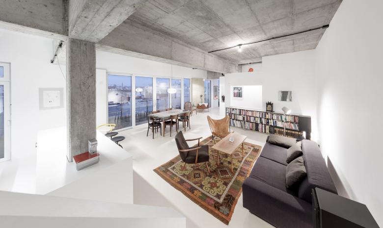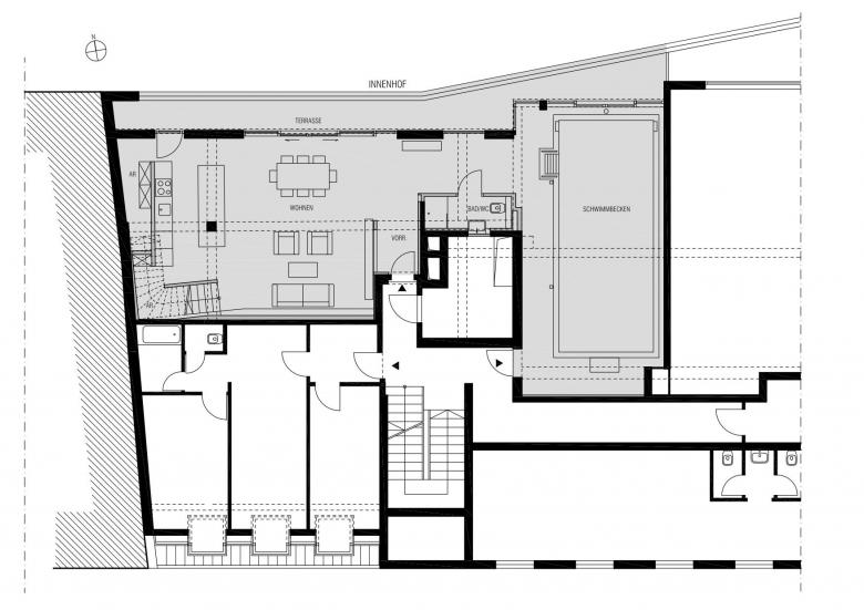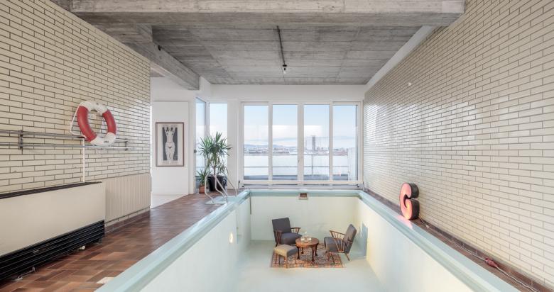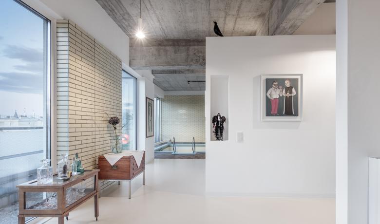 Ein 120 m² großer, privater Wellnessbereich im 4. Stock eines Betriebsge-bäudes aus den 60-er Jahren wurde zu einem „Wohnloft“ umgestaltet und mit einem ca. 50m² großen Dachraum verbunden. Das alte Schwimmbe-cken ist noch intakt und befindet sich mitten im neu geschaffenen Wohn-raum. Die alten STB -Strukturen wurden wieder freigelegt und geben dem Loft seine charakteristische Note.