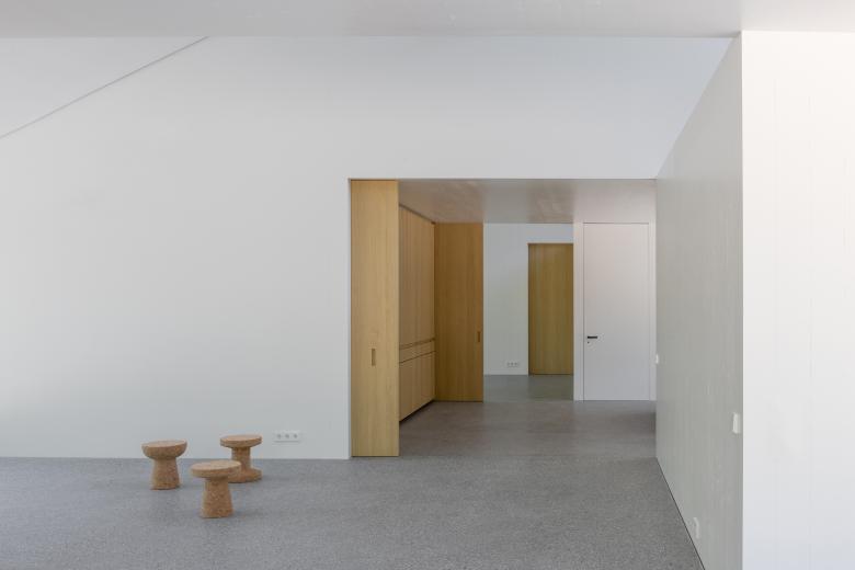 The configuration and open zoning of the house facilitates the coexistence between retreat and community where its residents may withdraw or participate in communal living at any time. The setting in its natural environment, the generous ceiling height, the amount of daylight and the honest materialization create a pleasant atmosphere and a pleasant indoor climate.