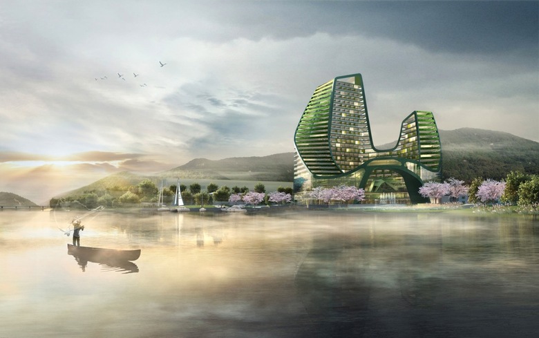 Der Entwurf für das Zhong Fang Blue Globe Hotel in der Stadt Jiande in der chinesischen Region Hangzhou lehnt sich an den Naturbegriff des Philosophen Laozi an – „Ziran“ bedeutet: spontan, natürlich, ungezwungen und sich selbst zu sein.