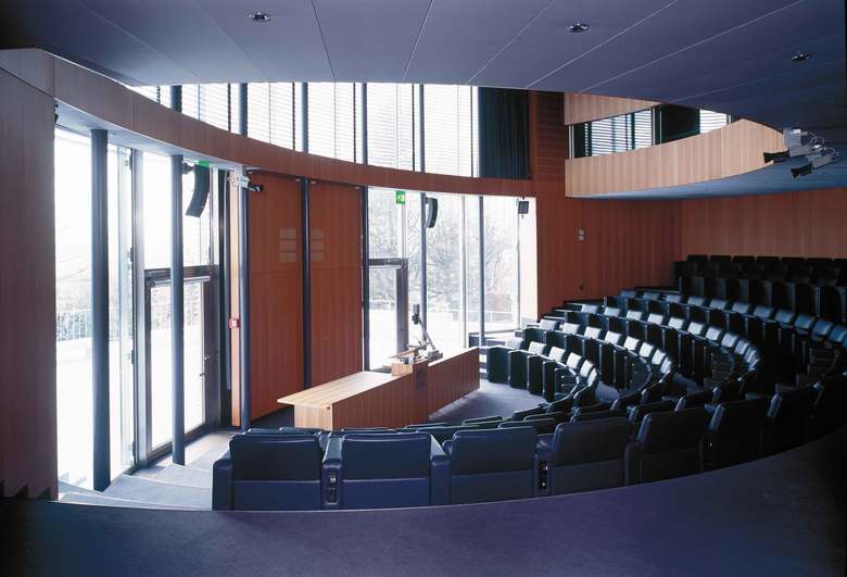 Die Lamellenstruktur ist das die Architektur bestimmende gestalterische Element. Sie hat eine ästhetische Funktion, erfüllt aber auch eine funktionale Aufgabe als Sonnen- und Sichtschutz. Der Kritik, die Lamellen hätten keine konstruktive Notwendigkeit und einen rein dekorativen Charakter, kann entgegengehalten werden, dass sie die Körperhaftigkeit der Neubauten unterstreichen und so eine verbindende Struktur schaffen, durch die sich die einzelnen Baukörper dem Altbau diskret zuordnen. Mit der Lamellenstruktur wird die äussere Kongruenz des Auditoriums, des Treppenturms und des Restaurants noch zusätzlich betont, die sich schon aus den linsenförmigen Grundrissen der Bauten ergibt. Zudem wirken die gerundeten Körper durch die metallische Struktur leicht und fein. Insbesondere nachts, wenn das Licht zwischen den Lamellen hervorleuchtet, scheint sich die Masse der transluzenten Baukörper aufzuheben. Im Inneren des ehemaligen Hotels haben Funktionalität, offene, helle Räume und modernste Technik Einzug gehalten. Auf ungezwungene Weise wurden die Architekten der »Doppelfunktion« des Gebäudes mit seiner traditionellen Silhouette auf der einen und der modernen, repräsentativen Bürozone andererseits, gerecht. Dem Wunsch des neuen Hausherrn entsprechend, sollten Fussball-Elemente in die Bauten einfliessen. In Anlehnung an das Signet der Fifa gestalteten die Architekten die neuen Bauteile in Form von Spitzellipsen, deren Achsen die Richtungen der Promenaden übernehmen. Das Restaurant bildet dabei geometrisch das Gelenk der beiden Alleeachsen.