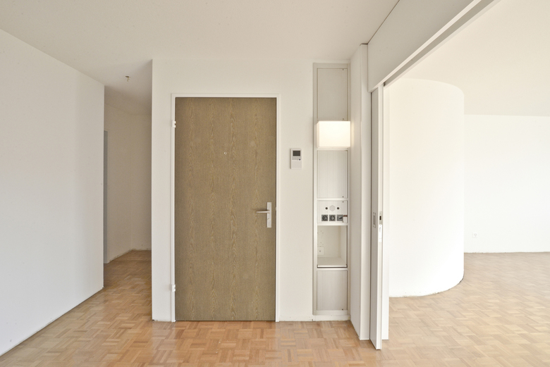 Terrassen und der EG-Decke wurden energetisch instandgesetzt. Damit kommt die Energieeffizienz der Anlage gemäss GEAK neu in Kategorie C zu liegen. Im Erdgeschoss sind die Massnahmen am deutlichsten sichtbar: 28 nachträglich eingebaute Stahlstützen wurden für den Brandschutz einbetoniert, die dazugehörigen Flügelmäuerchen entfernt, um dem Erdgeschoss seine ursprüngliche Grosszügigkeit zurückzugeben. Auf der Basis einer ‚archäologischen‘ Farbuntersuchung wurde das originale Farbkonzept nach sechs bunten Schichten rekonstruiert, an die heutigen Bedürfnisse angepasst und durchgänig umgesetzt. Die Abhangdecke über dem Erdgeschoss konnte von nachträglichen Aufdopplungen gelöst werden, ihr neuer Randabschluss spielt nun auf eine subtile Weise die Lesbarkeit der Unterzüge an der Fassade wieder frei. Ein Lichtkonzept verbessert die Ankunftssituation der Bewohner am Abend, dunkle Ecken mit beschränkter Einsicht verschwinden. Die Fassaden wurden legidlich gereinigt, trotzdem präsentiert sich die Überbauung insgesamt in einem neuen Licht.
