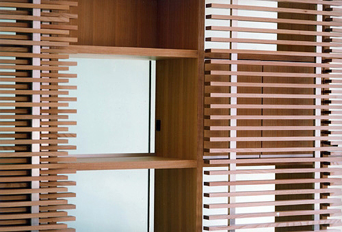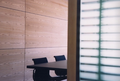Die Sitzungszimmer sind mit verschiebbaren Screens aus Holz ausgekleidet. Diese verleihen dem Raum eine warme, private Stimmung und beleben die Korridorwände mit ihrem Schattenmuster.