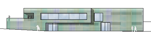 Als Fassadenmaterial werden unterschiedlich farbige, halbtransparente Hohlkammerplatten aus Polycarbonat vorgeschlagen.