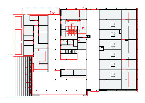 Instandsetzung und Erweiterung um ein öffentliches Café mit Gastroküche. Das Neubauvolumen wird so ausgebildet, dass in Verbindung mit dem Bestand ein einziger, kompakter Baukörper resultiert.