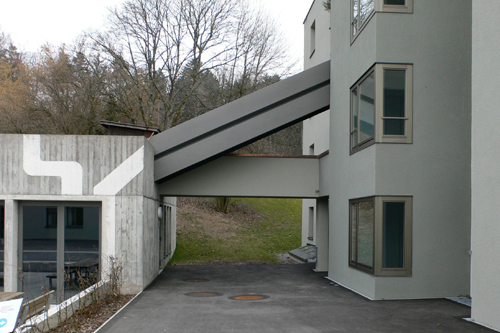 Die vorgenommenen Fassadeneingriffe und Anbauten führen die vorgefundene Architektursprache in zeitgemässer Interpretation weiter. Einzelne, prägnante Neubauteile setzen im Aussenraum belebende Akzente.
