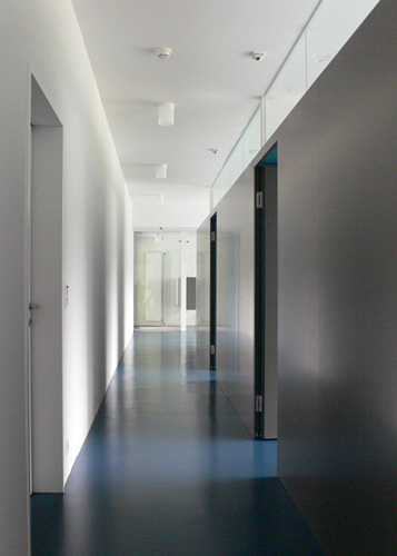 Der kubische Charakter der vorgefundenen Architektur wird durch das Farbkonzept verstärkt zum Ausdruck gebracht. Bis zu vier unterschiedliche, warme Grautöne verdeutlichen die volumetrische Komposition der Wohngebäude, welche sich ansonsten optisch ruhig im Hintergrund halten.