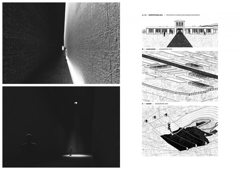The project is based on the former Nazi concentration camp Gross-Rosen. It explores the relationship between the physical and imaginary properties of architecture. Focusing on the emotional aspect of the reception of the stimuli made it possible to establish a model of links between memory and space allowing the visitor to recreate deteriorated spaces