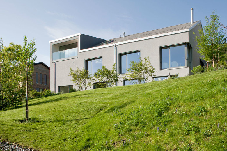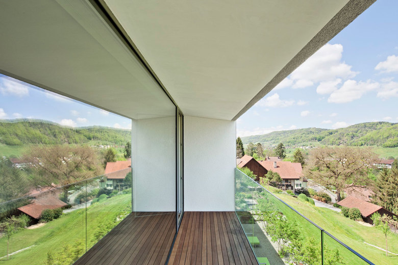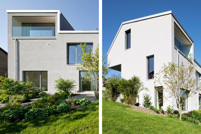 Grosszügige und flexible Räume genauso wie ein unverwechselbares und markantes Erscheinungsbild waren die Wünsche der Bauherrschaft. An exponierter Hanglage im Zürcher Oberland schafft das formal strenge Einfamilienhaus einen traumhaften Ausblick ins Tal und passt sich durch die schlichte Auswahl der Materialien leicht in die Umgebung ein. Im Innenraum runden Möbel und Bodenbeläge aus Kirschbaumholz das Erscheinungsbild ab.