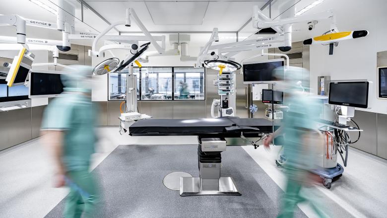 Die chirurgischen Fächer des Klinikums sind im Gartengeschoss auf der Ebene der interdisziplinären Notaufnahme mit ihren jeweiligen Kliniken und Ambulanzen vereint und funktionieren jeweils in organisatorischen Einheiten mit eigenen Leitstellen und entsprechenden Funktionsräumen.