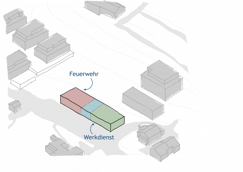 Die Feuerwehr ist derzeit im Schulhaus Vitznau untergebracht. Der dadurch belegte Raum wird jedoch dringend für den Schulbetrieb benötigt. Im Rahmen einer Machbarkeitsstudie wurde deshalb die Auslagerung von Feuerwehr und Werkdienst geprüft. Durch ihre Zusammenführung entstehen betriebliche Synergien, und es kann zusätzlicher Lagerraum in Schulhausnähe geschaffen werden.