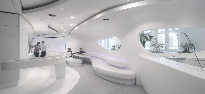In zentraler Innenstadtlage nahe der Frankfurter Börse entstand auf 950 qm eine inspirierende Arbeitsumgebung, die auf atmosphärische Weise die zukunftsorientierte Unternehmenskultur von Syzygy zum Ausdruck bringt. Eine in die Bestandsarchitektur eingefügte, 22 m lange Freiform ist optischer und kommunikativer Mittelpunkt des Büros. Sie vereint Zonen für informelles Arbeiten und Rekreation in einer fließend geformten Lounge-Landschaft und bietet Besuchern Einblicke in das kreative Agenturleben.
