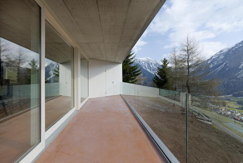 Dem Entwurf ging eine Studie der typischen Bündner Wohnbauten voran. Auffällig an diesen Häusern ist die monolithische Erscheinung, die sie wie aus dem Boden gewachsen aussehen lassen. Die Häuser werden auf mehreren Ebenen erschlossen, die Eingänge heben sich von den geschlossenen Fassaden als dunkle Flächen ab. Um bei möglichst geringer Fassadenöffnung viel Licht in das Gebäude zu bekommen, gehen die Laibungen der Fenstern im Winkel nach aussen.