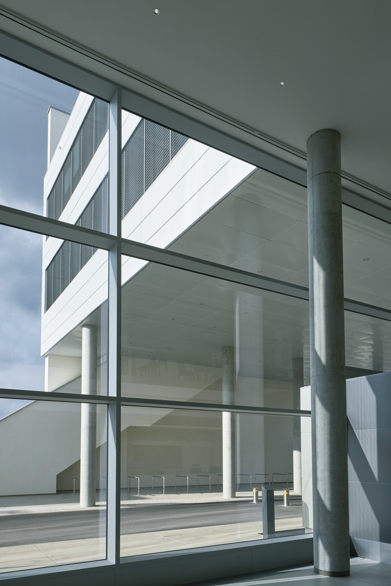 Der Neubau für 300 MitarbeiterInnen hat einen L-förmigen Grundriss und entwickelt sich in Tiefenrichtung des Grundstücks, so dass unter der Durchfahrt ein Erschließungsweg angeordnet werden konnte. Das großzügige verglaste Foyer, über dem die Obergeschosse der Straßenfront zu schweben scheinen, wurde an die Fassade verlegt – als Eyecatcher, aber auch, um den Verkehrslärm der viel befahrenen Wienerbergstraße von den Büros fernzuhalten. Auf der Galerie des Foyers wurde die Kantine als „schwebender Würfel“ angeordnet. Durchgehende Parapetbänder als Gliederungsmotiv der Fassaden verleihen dem Gebäude ein sachlich-modernes Flair und unterstreichen den Tiefenzug des Baukörpers.