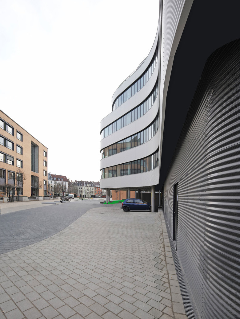Der Bebauungsplan für das ehemalige IWKA-Gelände „Westliche Brauerstraße“ sieht für das östliche, an der Gartenstraße gelegene Grundstück drei Baublöcke auf dem dreieckigen Grundstücke vor. Zwei davon sind bereits mit solitären Gebäuden bebaut. Für das verbleibende Grundstück hat Kramm + Strigl einen prägnanten Baukörper geplant. Der Entwurf zeigt einen im Grundriss mehrfach gerundeten und in der Höhenentwicklung gestaffelten Baukörper. Mit dem linearen Verlauf entlang des Grünzugs sind die im Bebauungsplan vorgegebenen Baulinien weitgehend eingehalten, während im Binnenbereich des Baublocks die plastisch gerundete Ausformung des Neubaus amorphe Außen- und Innenräume entstehen lässt.