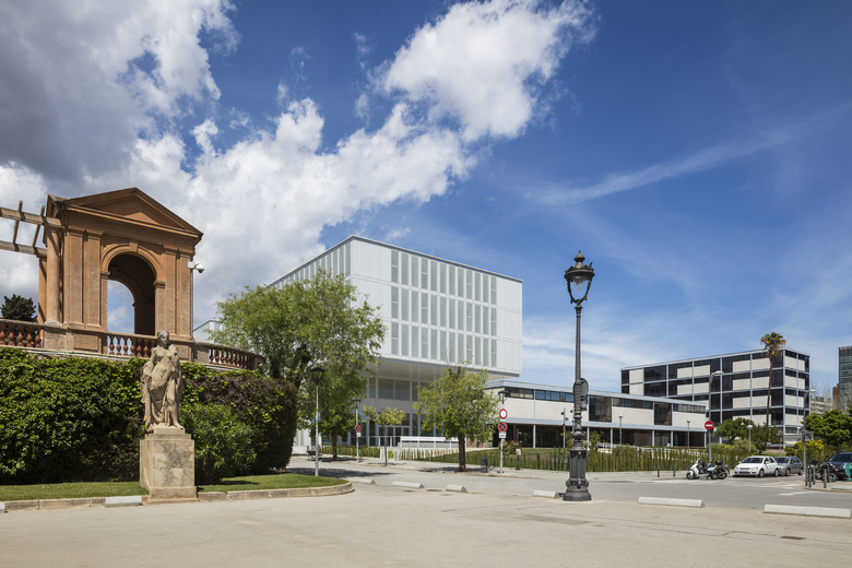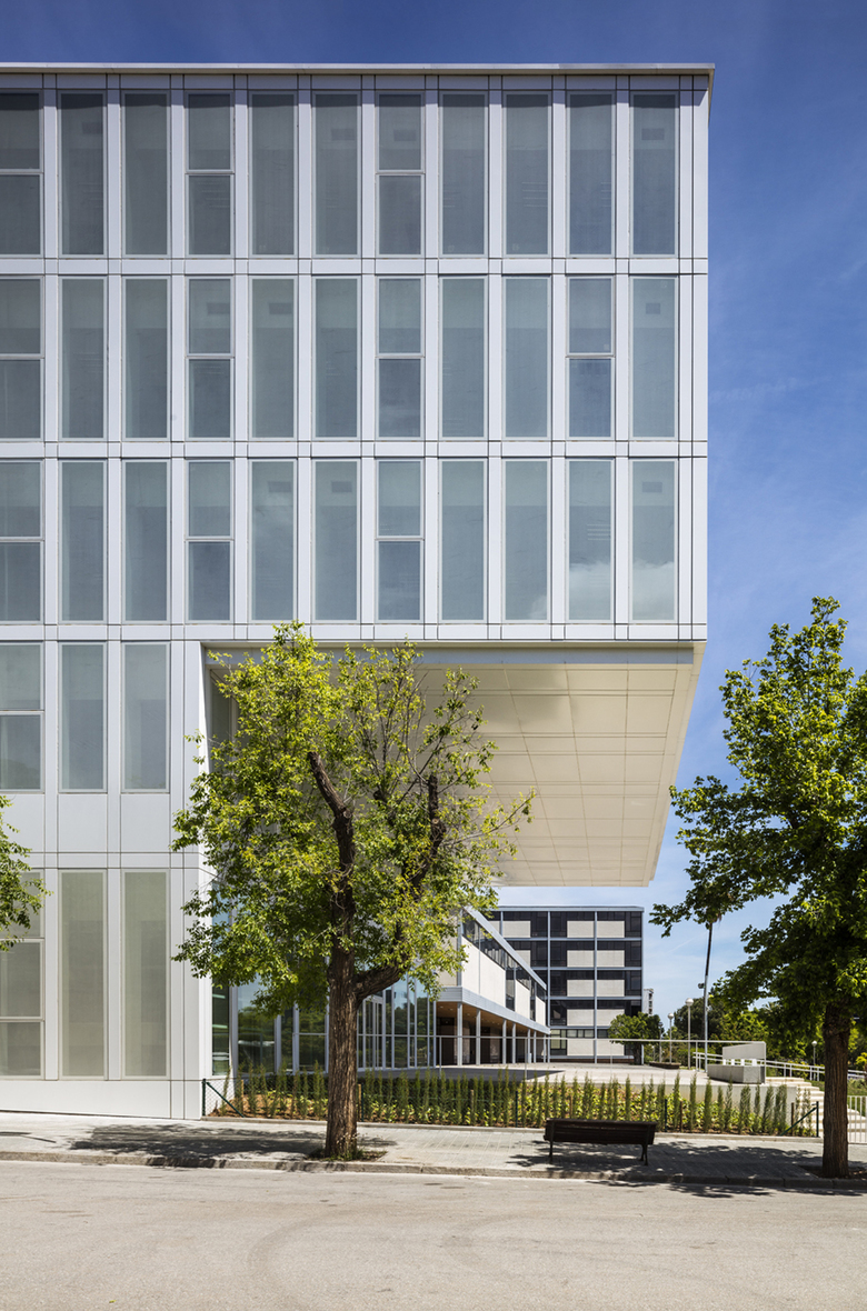 This ensemble is disposed in a perpendicular axis to Diagonal Avenue, following the orthogonality of the original building axis, built in 1958. In the other direction, along the fronts of Fernando Primo de Ribera street and the inner block, the façades are parallel to the original building generating a pedestrian street.