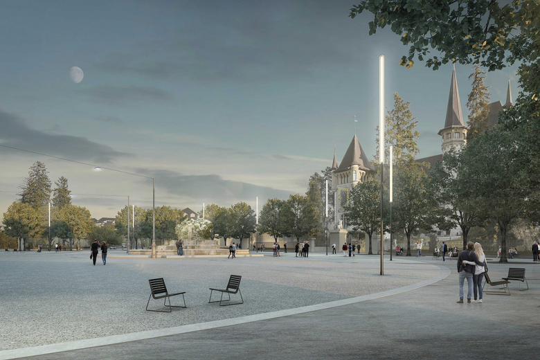 Als Eingang ins Kirchenfeldquartier bildet der Helvetiaplatz künftig das repräsentative Foyer, welches alle Wege bündelt und wieder verteilt, auf welchem sich Menschen treffen und soziale Beziehungen entstehen, sich kulturelle Aktionen manifestieren.