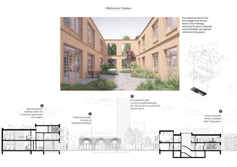 The small town renaissance is a comprehensive approach to small-town living possibilities enabled by the rise of the digital age. Allowing for the transformation of existing typologies into new hybridised states of ownership and function in which the definition of a traditional tenement house goes beyond the existing framework.