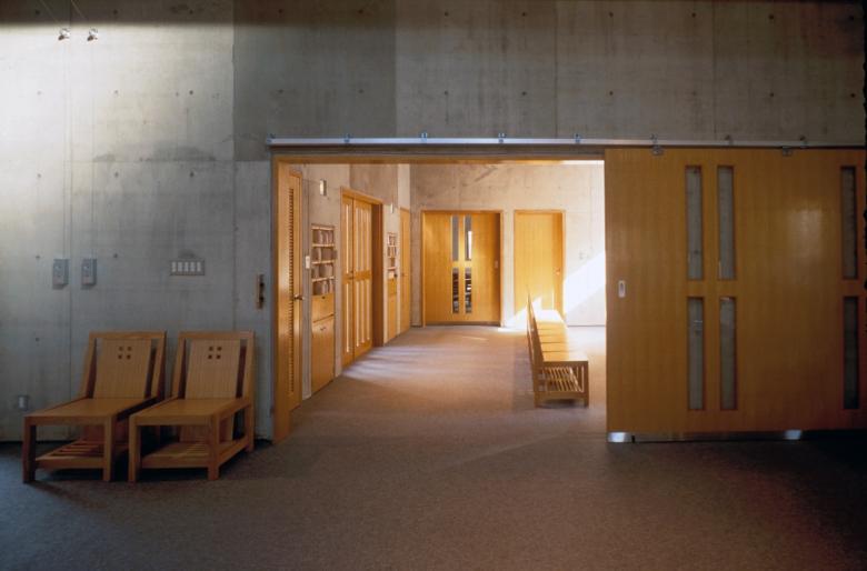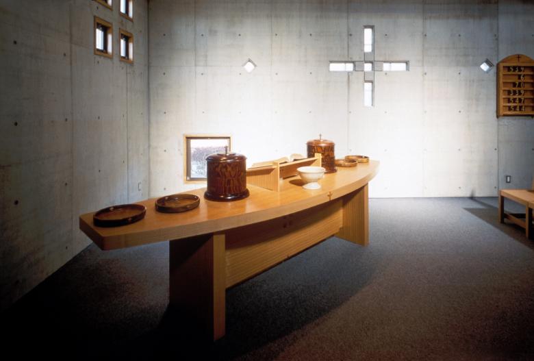All the main rooms have square floor plans and are arranged in an interlocking configuration. The chapel is filled with light, illuminating and blessing each person gathered around the altar equally. The small chapel shares the same layout and serves as a venue for gatherings other than worship, as well as for children’s services.