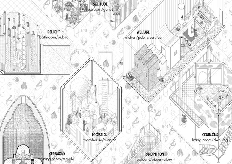 Sometimes it feels like we are living in a space of fragments, or as floating fragments in a vast space. Trying to express and understand that bizarre feeling, we changed our perspective and sought the consciousness of the inanimate or the boundaries of our own imagination. Our project is an experiment that follows a specific process. We animate and give life, character and new form to 9 household objects which live in 9 different rooms of a house. The rooms are now becoming their own buildings-spaces. All these spaces together not only complete a dwelling but also a city. Our main issue is how the objects, the house and the city shape ourselves and our everyday life. So, the things we are, are we?