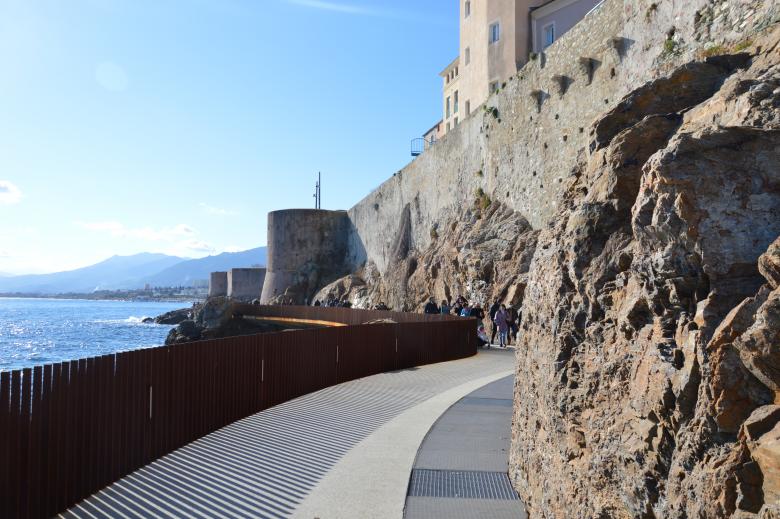 A Bastia, deuxième ville de Corse sur la côte nord-est, Dietmar Feichtinger Architectes a réalisé la promenade Aldilonda, qui signifie "Au-dessus de la mer" en corse, en association avec les architectes locaux Buzzo Spinelli, Insitu Paysage et les ingénieurs de Sbp.