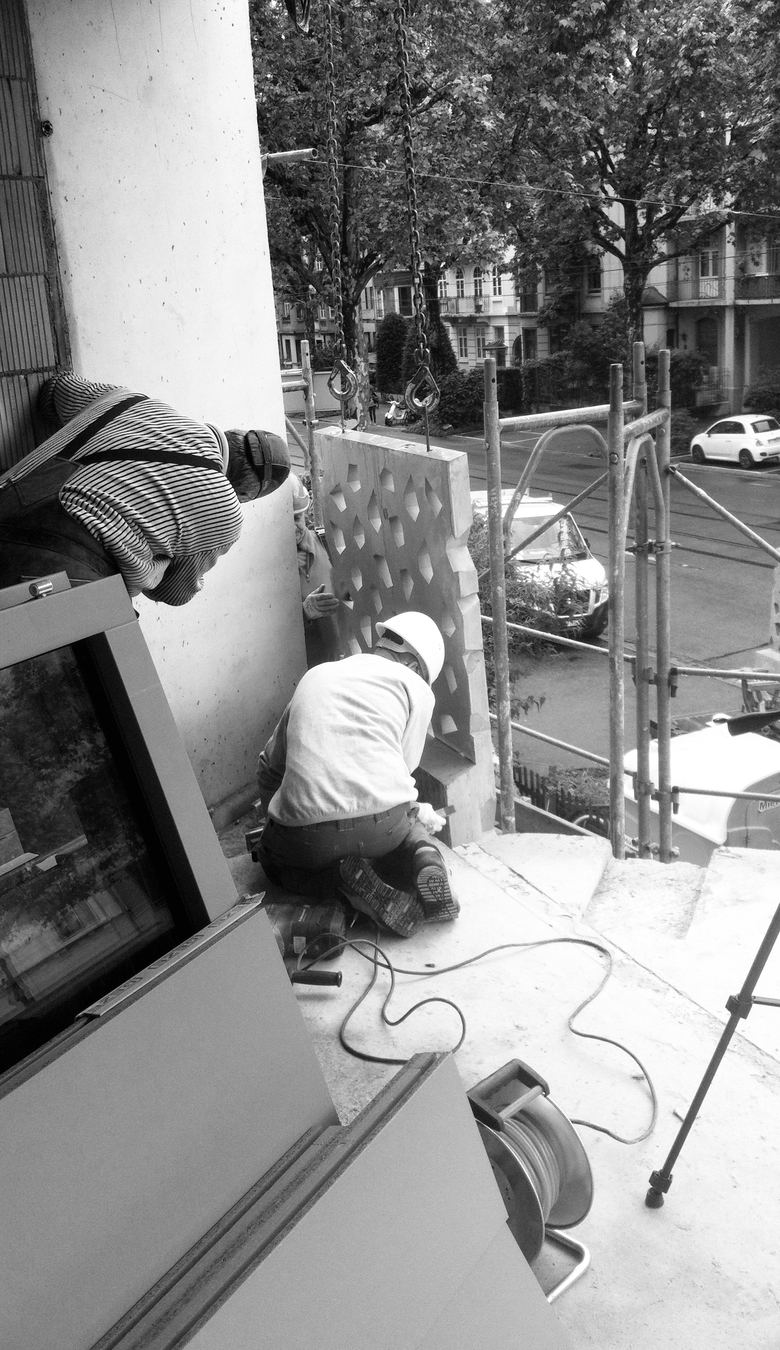 Die zweiseitig orientierten Wohnungen erhalten den nötigen Einsichtschutz von der stark frequentierten Strasse durch die Fassadenelemente. Gleichzeitig sorgt die Perforation der Elemente für eine grosszügige Belichtung des Innenraums. Schallschutzfenster, eine Komfortlüftung mit Wärmerückgewinnung und eine Fußbodenheizung sorgen für den zeitgemäßen Wohnkomfort und für einen niedrigen Energieverbrauch.