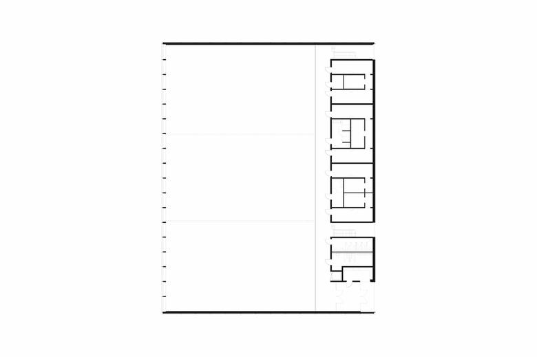 Im Innern wird mit einer kompakten Organisation des Grundrisses eine logische, kurze Wegführung erreicht. Der Besucher betritt das Gebäude lateral und sieht auf der langen Galerie stehend in die abgesenkte Halle. Sämtliche Räume werden direkt über die Galerie und die zwei Treppen erschlossen.